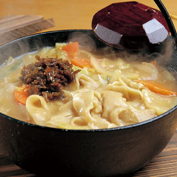 ◆特 徴◆ 小麦で作る手打ち平麺を、豚肉、白菜、人参、大根、ねぎなどの野菜と味噌で煮込んだ、どこかなつかしくやさしい味です。